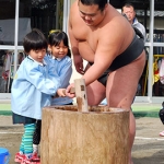 お相撲さんと「ぺったん」 幼稚園でもちつき大会 木更津