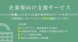 株式会社Vivid Navigationのプレスリリース(2020年4月11日 11時)。会社・ビジネスを運営されている大変多くの方々が今回の新型コロナウイルスの影響によって、経済的なダメージを受けられていることから、ご希望者にびびなびの有料広告サービス「ホットリスト」を無料提供させていただきます。…