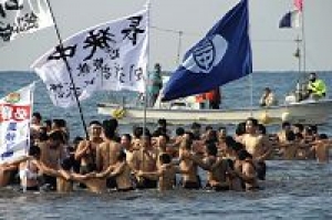 館山市の北条海岸で18日、「第67回館山湾寒中水泳大会」が行われ、中学生以上の男女671人が、水着やふんどし姿で、真冬の海へとなだれ込んだ。…