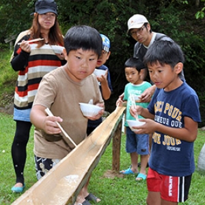 流しそうめん「面白い」 アユつかみ取り体験も 市原市民の森キャンプ場