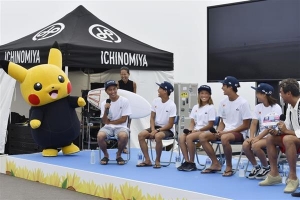 2020年東京五輪の開幕2年前となった24日、サーフィンの会場となる千葉県一宮町の釣ケ崎海岸で、日本代表「波乗りジャパン」を応援しようと、競技関係者や地元の子ど……