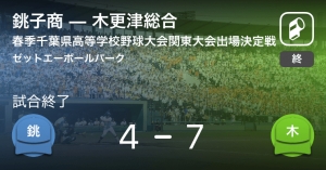 春季千葉県高等学校野球大会関東大会出場決定戦は5月6日(月)、ゼットエーボールパークで銚子商業高等学校(男子)vs木更津総合高等学校(男子)の試合が行われた。銚子商4-7木更津総合とし、木更津総合が3...…